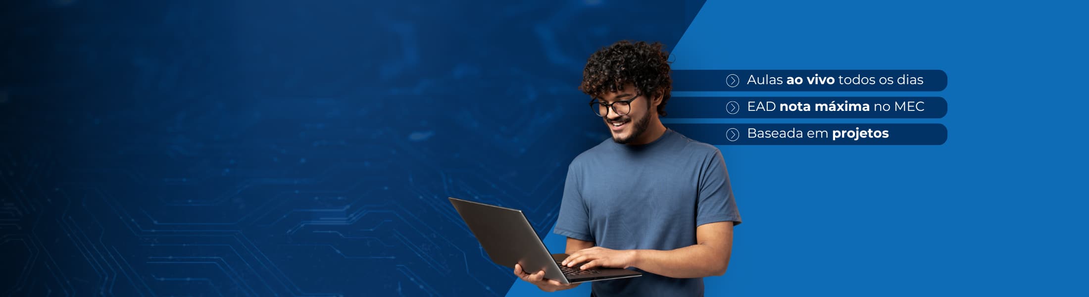 Escolha sua Graduação Live de interesse e participe de aulas interativas, conectando-se com colegas e professores diretamente do seu desktop, laptop ou celular.
